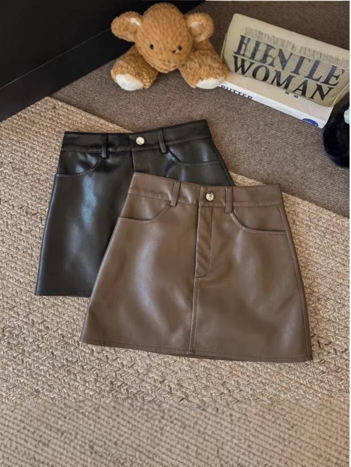 Melanoid Spicy Girl Women's High Waist A-line PU Leather Skirt, Anti-exposure, Versatile Skirt for Autumn/Winter.