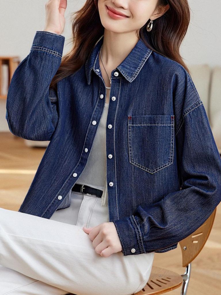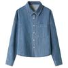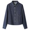 Women's Long Sleeve Denim Blue Shirt Jacket - Spring 2026 Retro British Style with Thickened Lapel