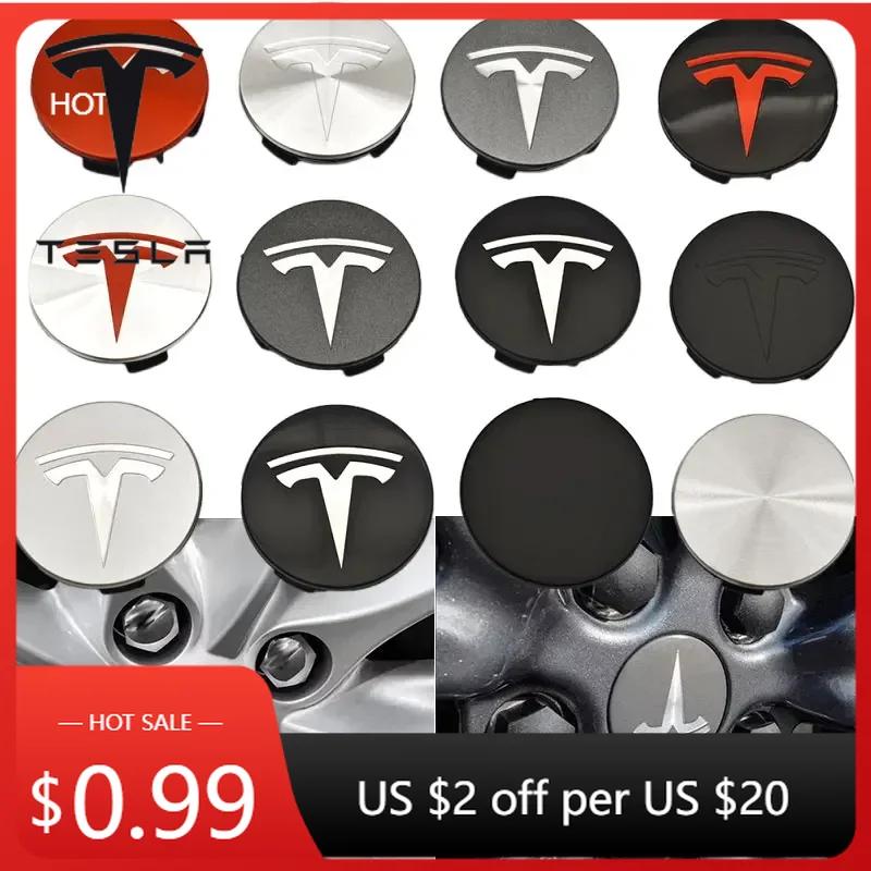 Car Sticker Tesla 56mm ABS Tesla Wheel Center Hub Cap Emblem Logo Car Rims Cover Hubcap For Tesla Model 3 Y X S Original Badge A
