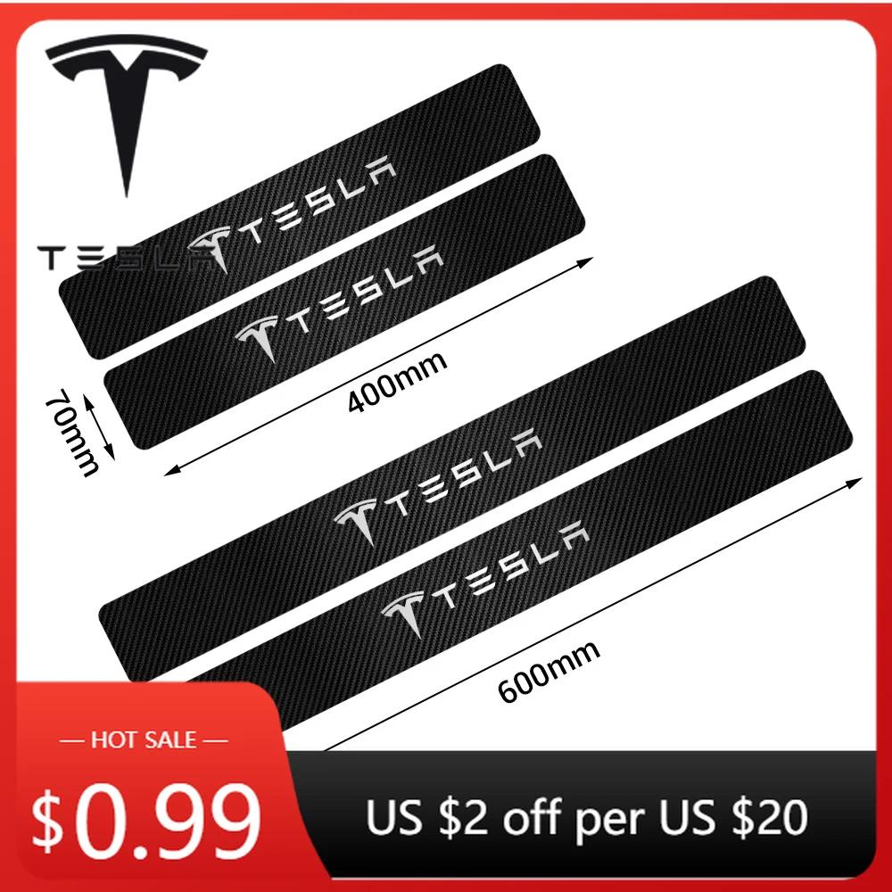 Car Sticker Tesla 4Pcs Car Styling Carbon Fiber Vinyl Door Sills Guard Sticker for Tesla Model 3 Model S X Roadster SpaceX Cyber