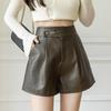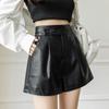 Shorts Women's Casual High Waist Leather Pants Loose Slit Slim A-line Wide-leg Pants