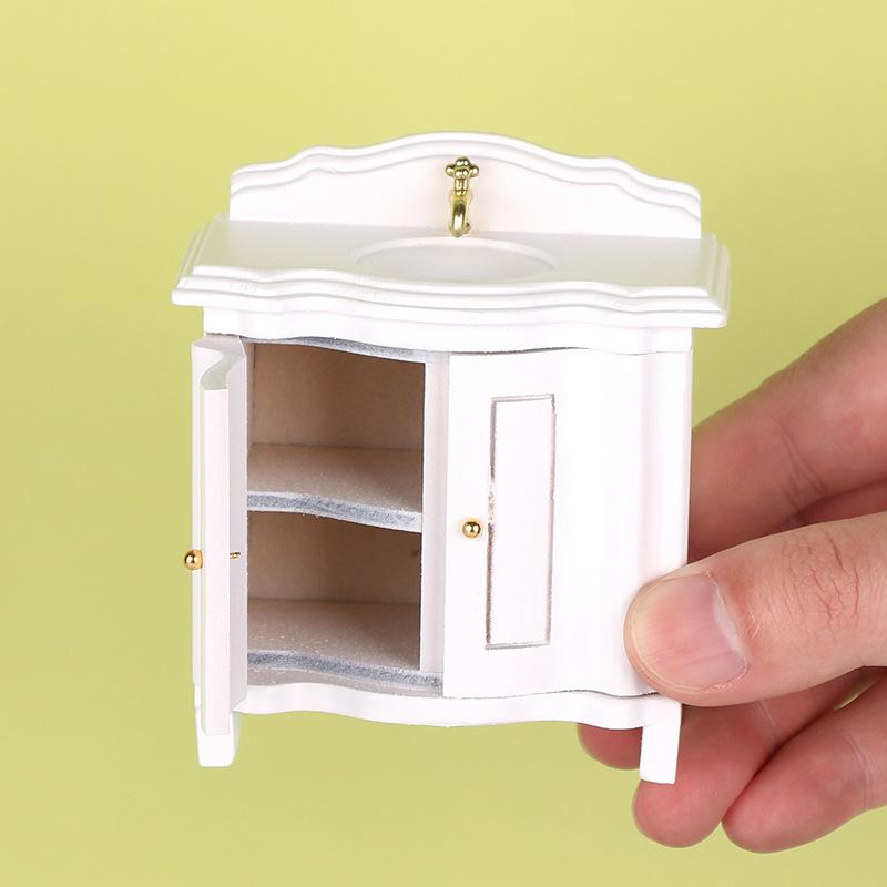 1Pcs Doll House Miniature Bathroom Sink Cabinet Prop Realistic 1/12 Scale Dollhouse Simulation Wash Basin Toy Diy Accessories