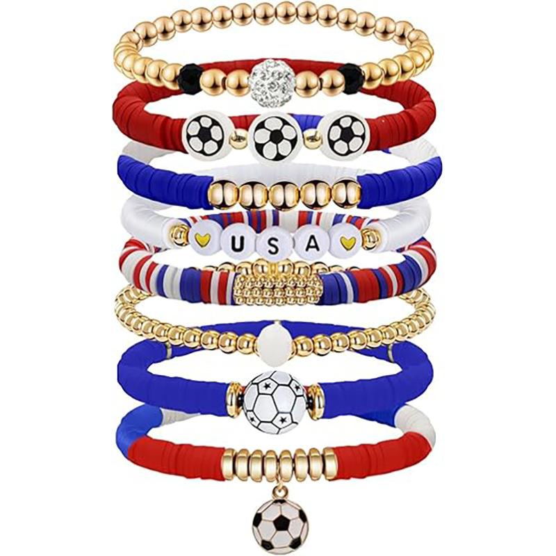 World Cup Team Match Day Bracelet Stackable Soft Ceramic Beaded Stretch Football Accessories Fan Bracelet