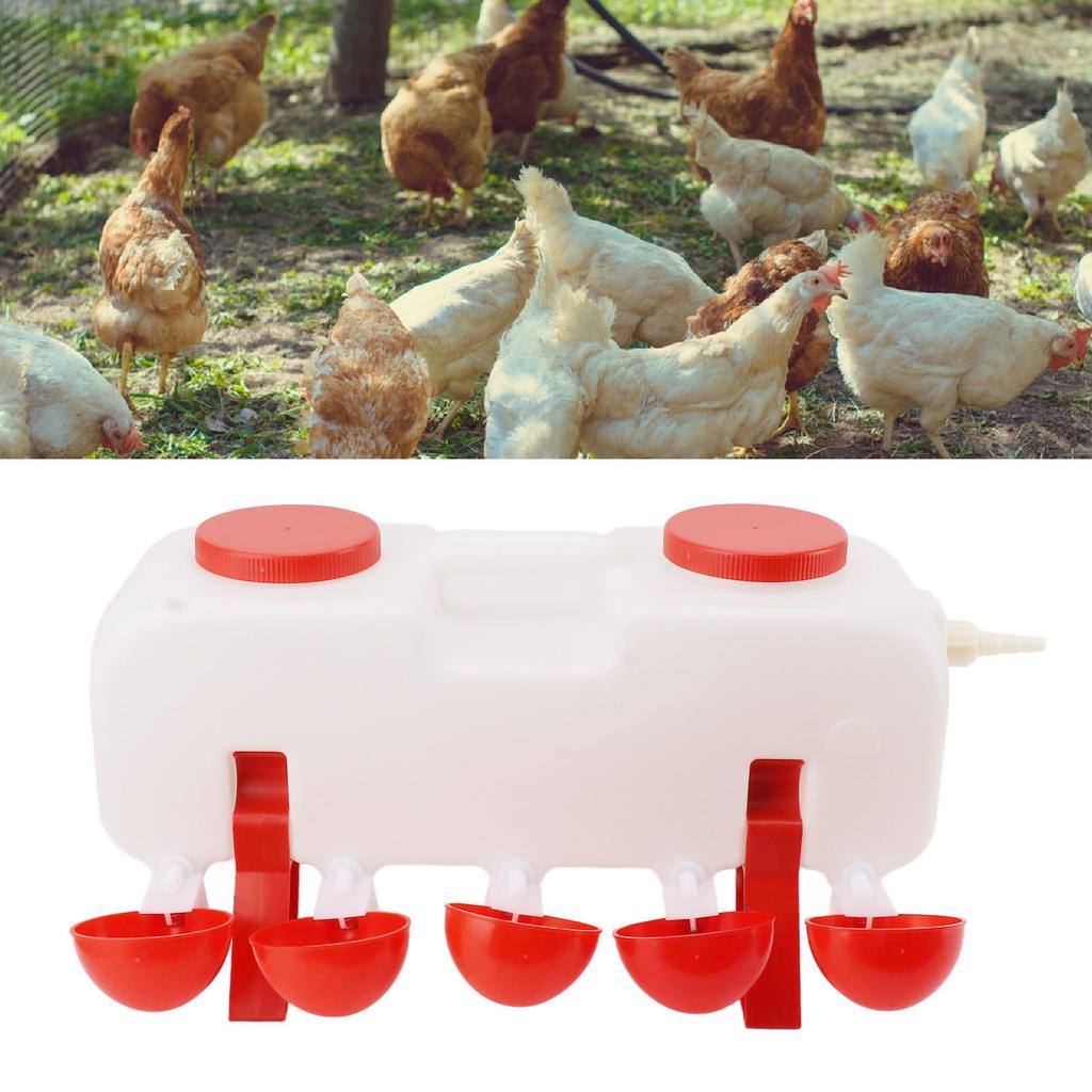 Automatic Chicken Waterer, Double Row Design, 10 L Capacity, 10 Automatic Bowls, Water Control , Clean Ditch, Suitable for Goose
