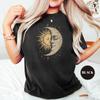 Mystical Sun and Moon Face Comfort Unisex TShirt Chic Vintage Bohemian Attire Apparel Short Sleeve Trendy Y2K Casual Streetwear