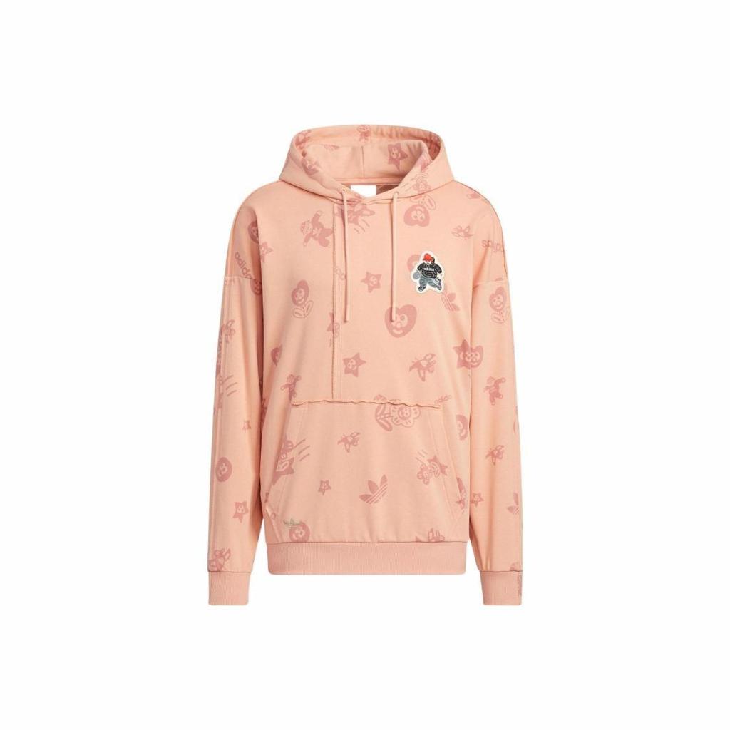 adidas Cartoon Graphic Kangaroo Pocket Pullover Hoodie for Men, Red and Pink HR3464