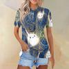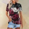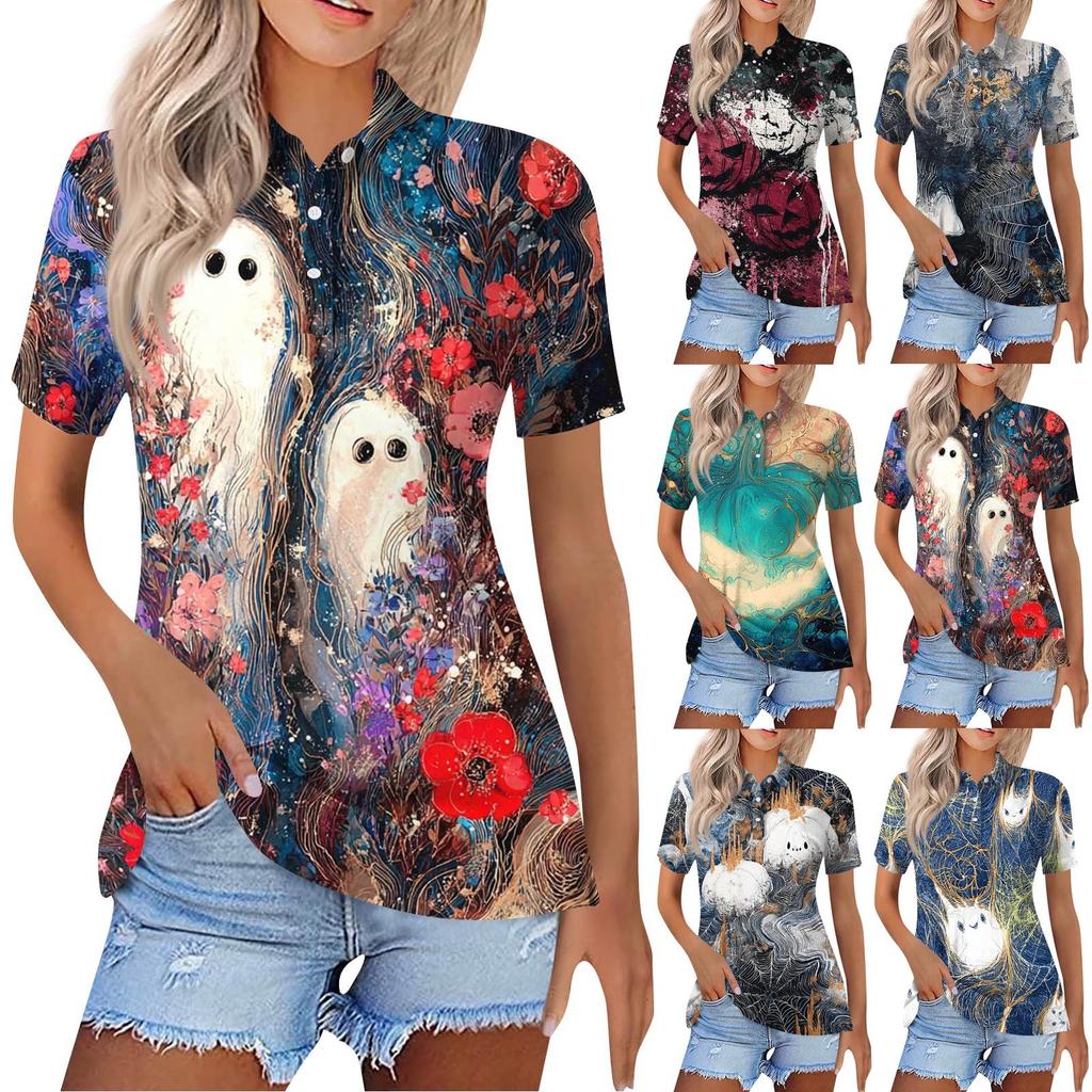 Women's Fashion Casual Lapel Short Sleeve Printed Shirt Women's Button Up Tops