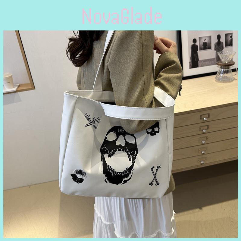 Stylish Fashionable Tote Bag For College Students Versatile Shoulder Carrying Black And White