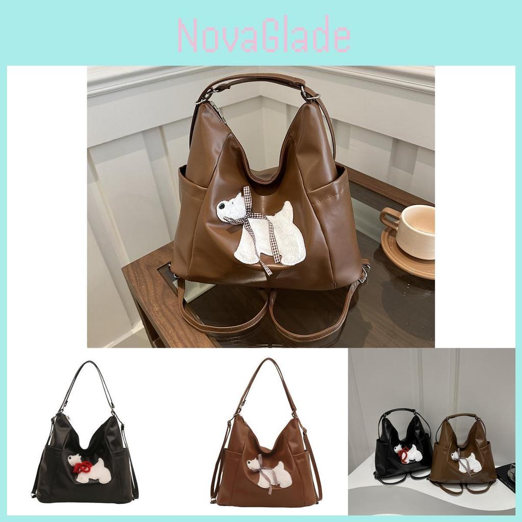 Chic Korean Style Cute Dog Tote Bag For Women With Fashionable Design In Black And Brown