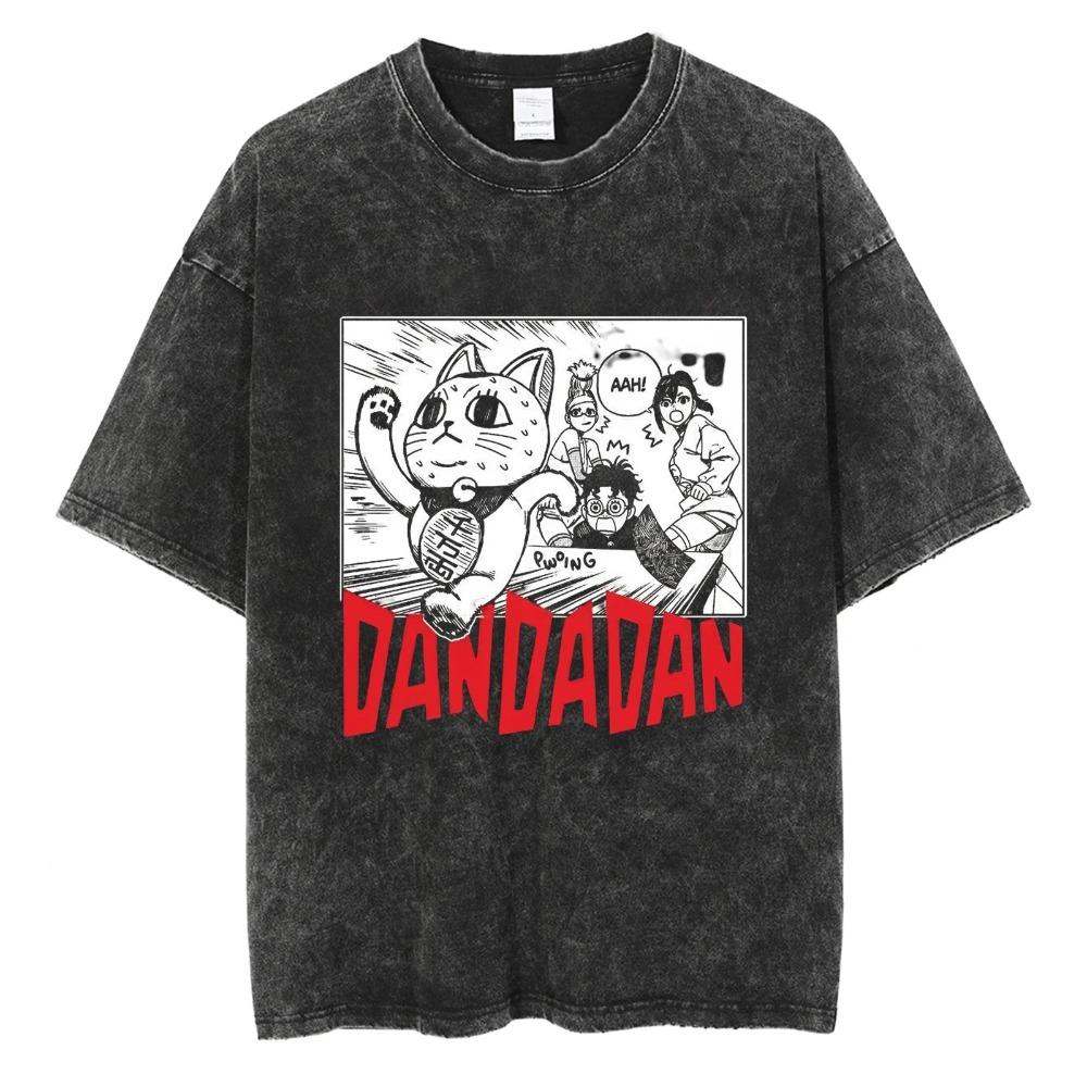 Dandadan Lucky Cat (Maneki-neko) Manga Panel Vintage Washed Anime T-Shirt, Unisex Supernatural Manga Fan Streetwear Tee, 100% Cotton Casual Short