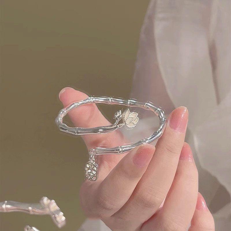 Bamboo Lotus Bracelet Women's Chinese Bracelet Safe and Simple Inheritance Half Bracelet Half Chain Decoration