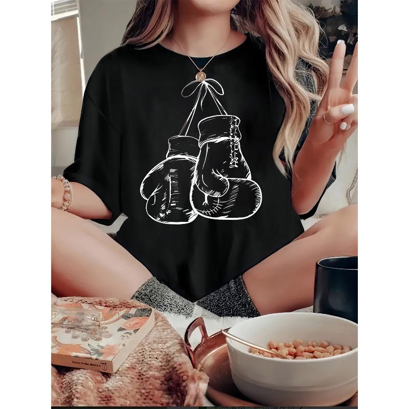 Women's Linear Boxing Gloves Print T-Shirt Trendy Short Sleeve Casual Summer Holiday Top