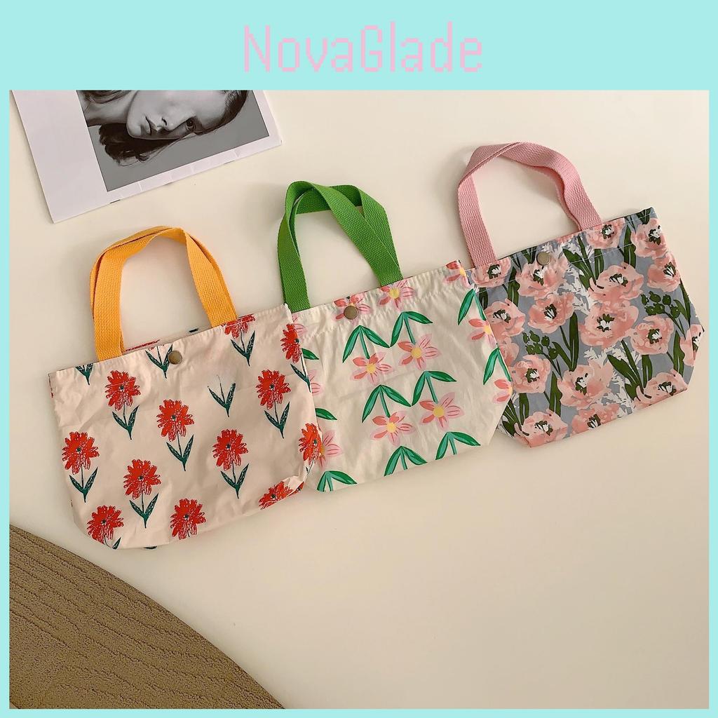 Charming Floral Cotton Tote Lunch Bag Adorable Handheld Canvas Bento Bag