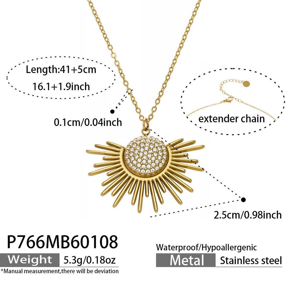 5A Zircon Sun Pendant Necklace, 18k Gold-Plated Stainless Steel