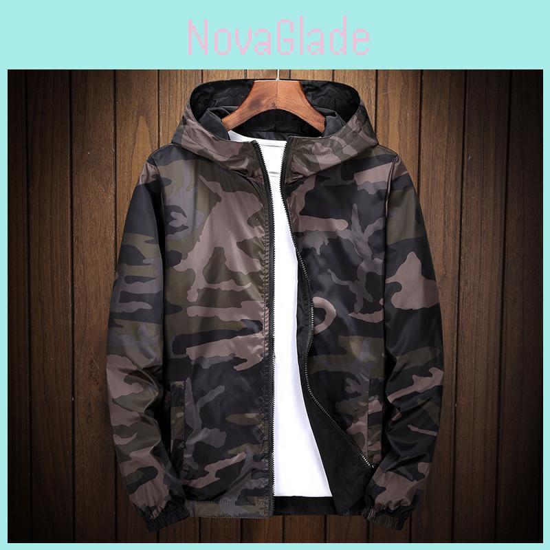 Reversible Men Jacket Coats Male Causal Hooded Camouflage Windbreaker Oversize Outwear