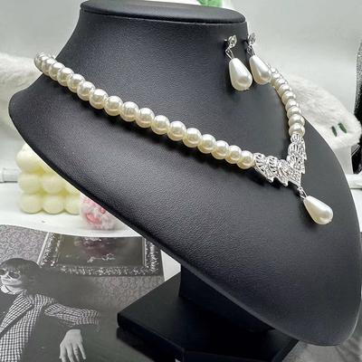 Imitation Pearl Necklace Two-Piece Set Women Wedding Season Imitation Pearl Necklace Earrings Jewelry