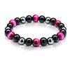 Tiger Eye & Volcanic Rock Beaded Magnet Bracelet with Obsidian Gallstone