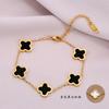 Colorfast Trendy Fashionable Four-leaf Clover Titanium Steel Bracelet for Women Shell Design Unique and Stylish Jewelry