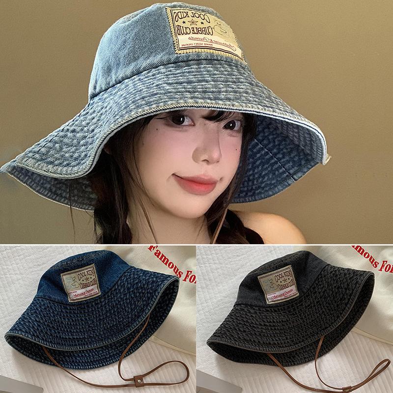 Retro Washed Denim Fishing Cap Women'S Large Brim Sunshade Hat Face Slimming Uv Protection Baseball Cap Stylish Korean Version