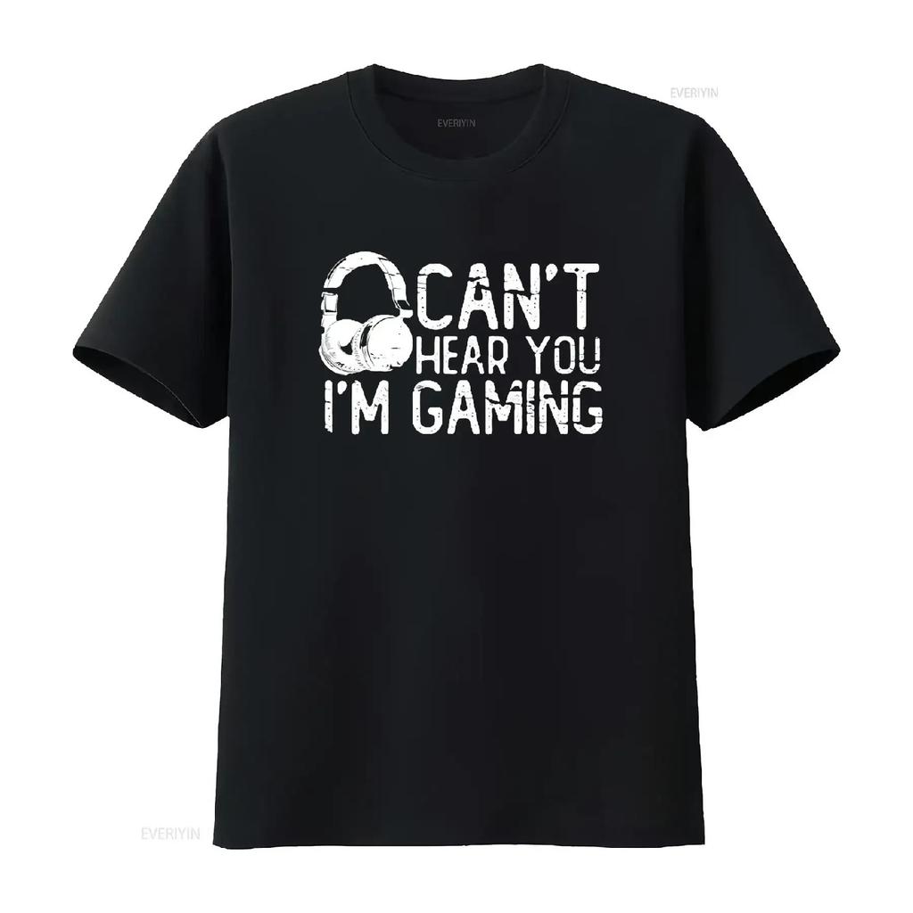 Can T Hear You I M Gaming Headset Video Games Gamer Mens Funny Shirt Black Vintage Washed Streetwear Fashion Unisex Soft