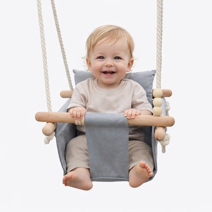 Balançoire bébé en bois - GINGER HOME Scandi - Assise coton douce - Structure bois massif - Charge 30 kg