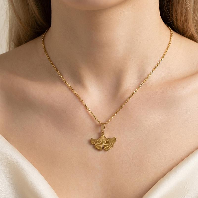 18K Gold Plated Stainless Steel Ginkgo Leaf Pendant Necklace for Women - Elegant Clavicle Chain, Ideal for Daily Wear or Gifts