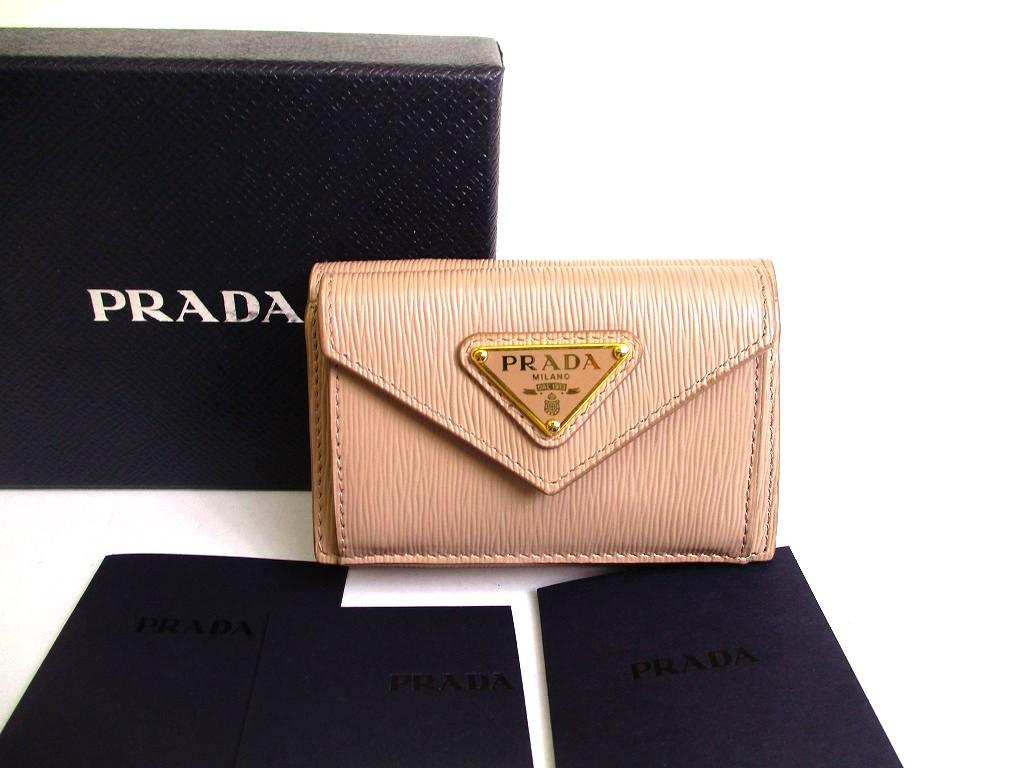Authentic PRADA Beige Leather Trifold Wallet Compact Wallet #b149 Open Box