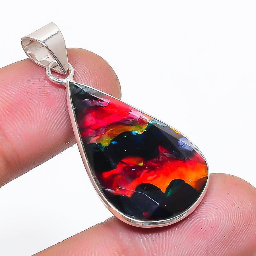 Natural Ammolite Gemstone 925 Sterling Silver Jewelry Pendant 1.69" AP-14265