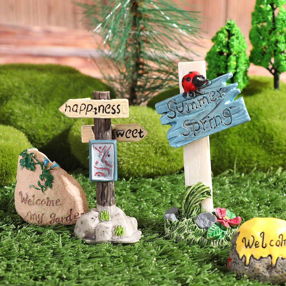Resin Craft Succulents Bonsai Micro Landscape Fairy Garden Welcome Stake Figurine Mini Road Sign Simulation Stone Signpost