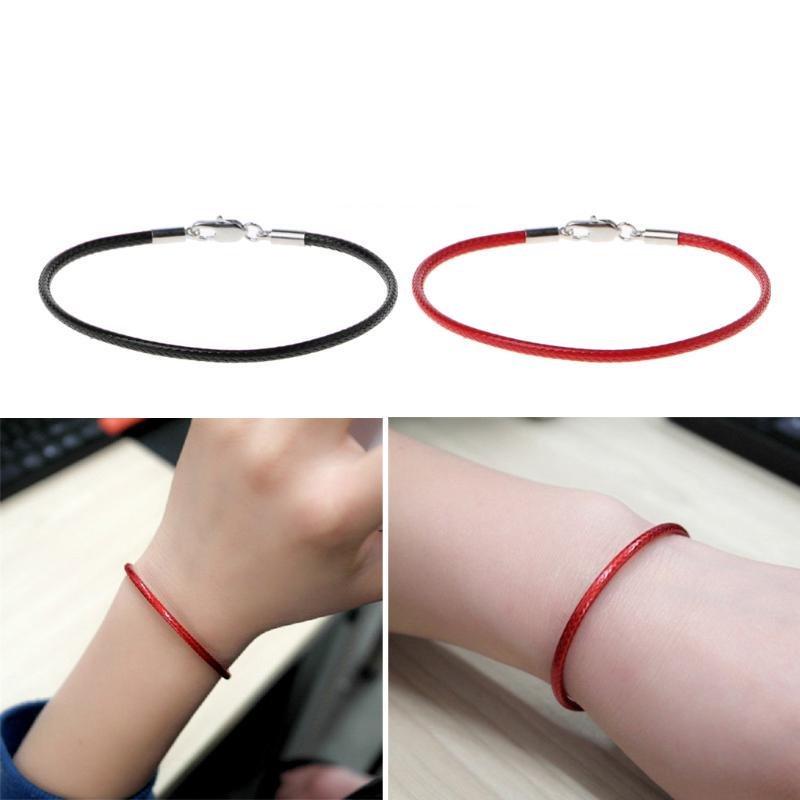 Bracelet Rope Braided Leather Bracelet Wristband Lobster Clasp Beads Diy Jewelry 2pcs Black+red