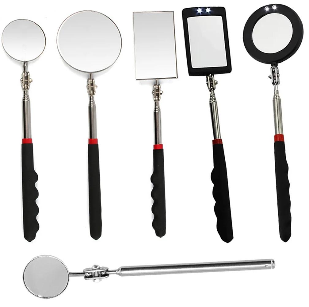 360° Inspection Mirror LED Light Telescoping Mirrors Extend Mechanic Tools Inspection Mirror Telescopic Handle Repairing Tools