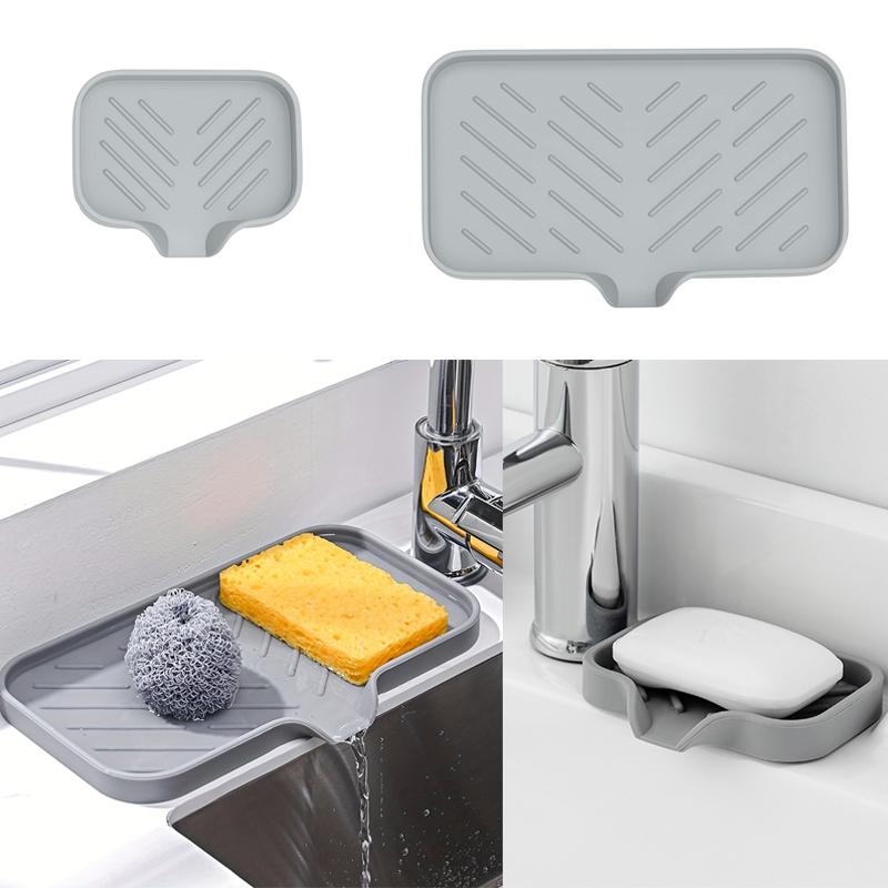 1PC Kitchen Sink Soap Sponge Tray Self Draining Premium Silicone Soap Holder for Bathroom Caddy Organizer