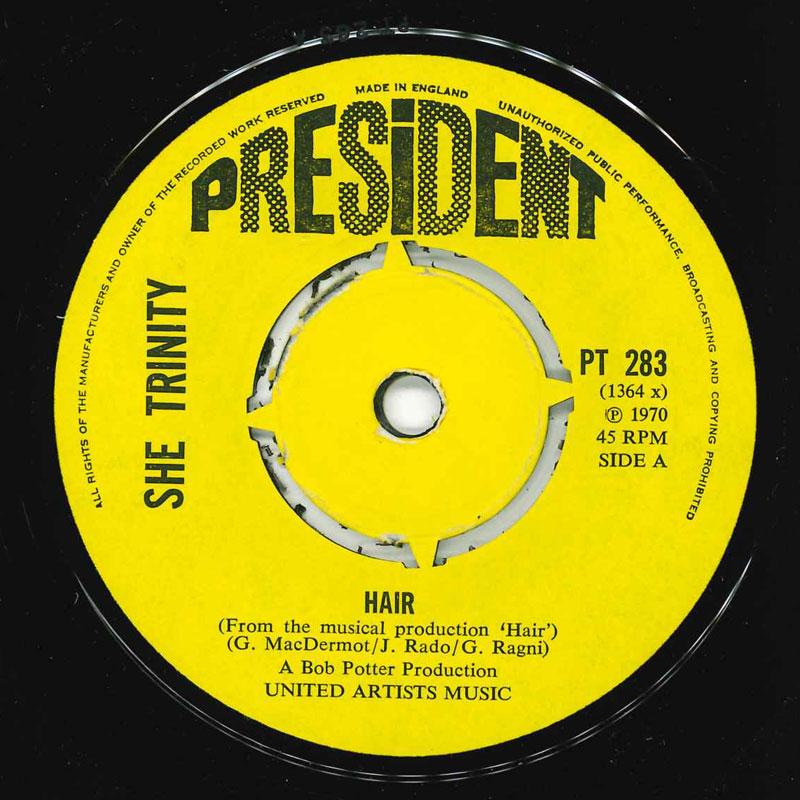 7inch Record SHE TRINITY Hair PT283 President Recor 1970 UK Rock Used