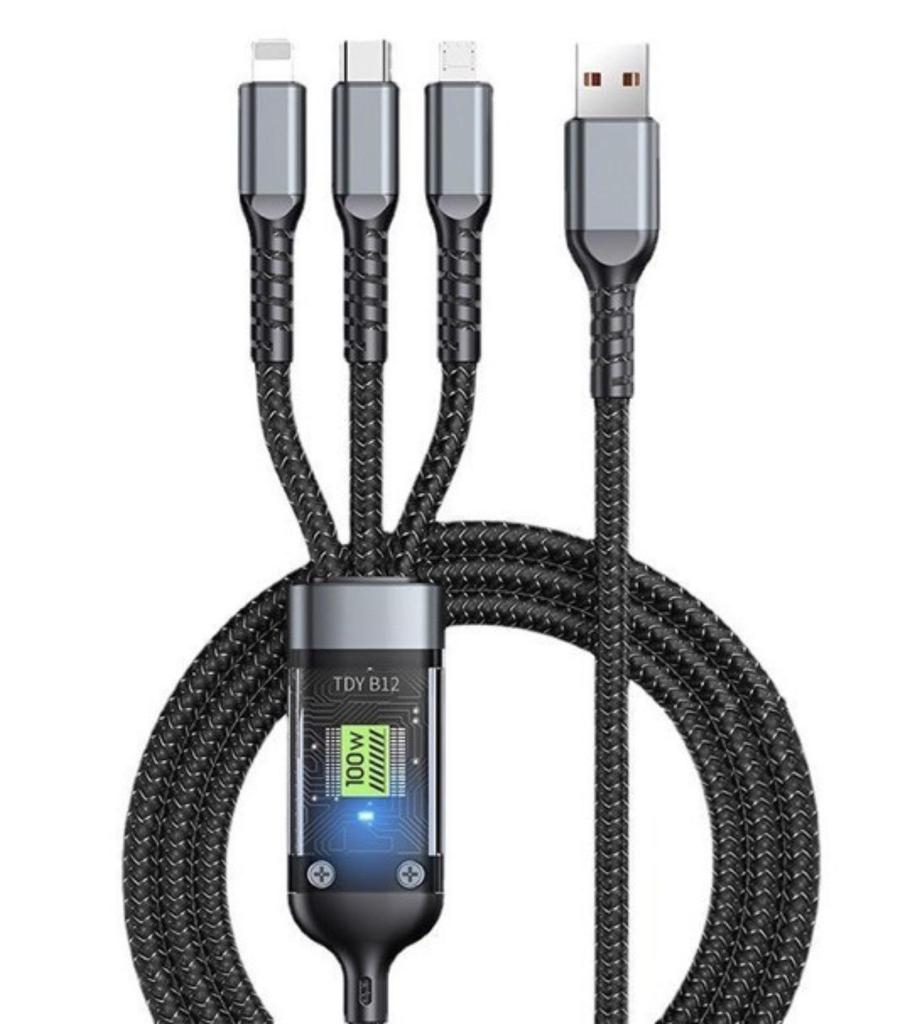 100W Transparent Digital Display 3-in-1 Fast Charging Cable
