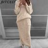 BITCED Autumn/Winter Plus Size Women's Loose Batwing Sleeve Knitted Long Pullover Dress
