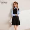 Bailuyu Women's Round Neck Solid Pleated Knit Mini Dress