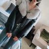 Women's Short Loose PU Winter Jacket Suede Bronzing Big Fur Collar