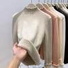 Vinter Elegant Halvhøy Hals Fløyel Base Skjorte Ny Dame Fortykket Vintage Slim Underskjorte Mote Langermet Strikk Casual Topp