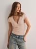Women's Y2K solid color slim navel revealing V-neck short-sleeved T-shirt