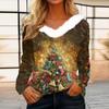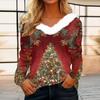 Dames Juleprintet Langermet Party Plysj Hals V-hals Topp