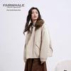 Mark Fairwhale Women's 2025 Winter Short PU Leather Down Jacket with Faux Fur Collar