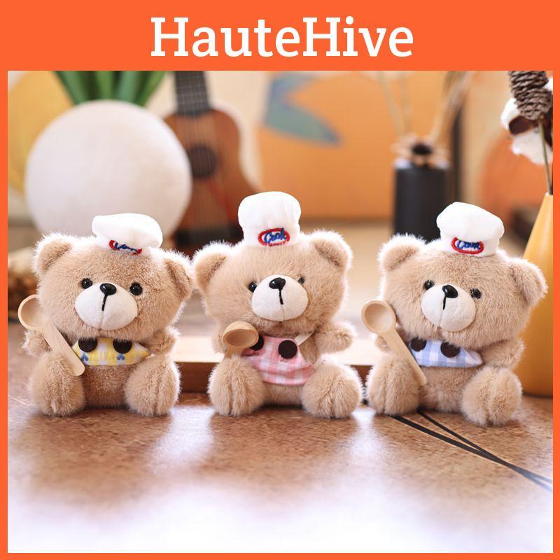 Bear Plush Chef Pendant Wearing Checkered Clothes And Carrying A Spoon Design