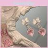 Pink Heart Stylish Earrings Fashionable Long Alloy Plated Geometric Drop Jewelry For Women