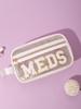 Fashion PVC Chenille Letter MEDS Makeup Bag - Portable Travel Toiletry Organizer with Large Capacity and Zipper Closure