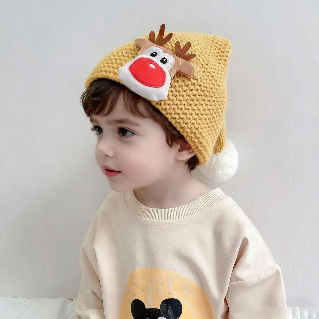 Trendy Cute Christmas Knitted Hat for Kids - Warm Woolen Beanie in Candy Colors for Autumn & Winter