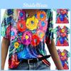 Tops Shirt Women Vintage Floral Print V Neck Tunic Tops Blouse Clothing Gift